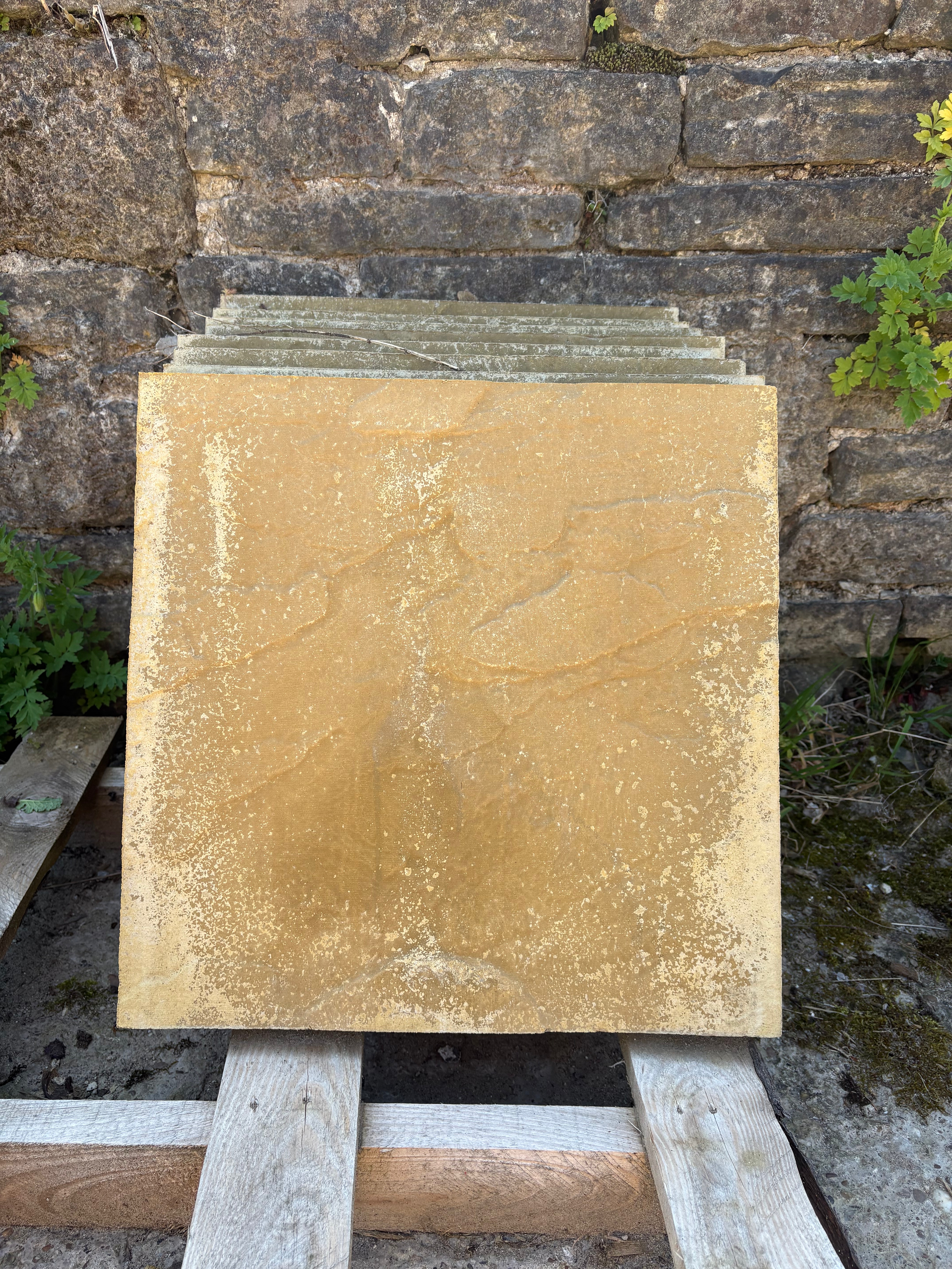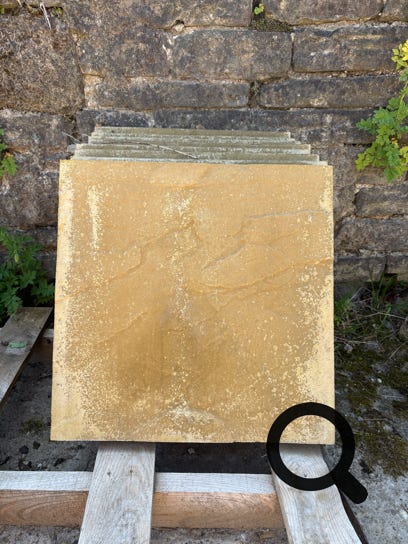 450 x 450mm paving stones, sandstone colour.