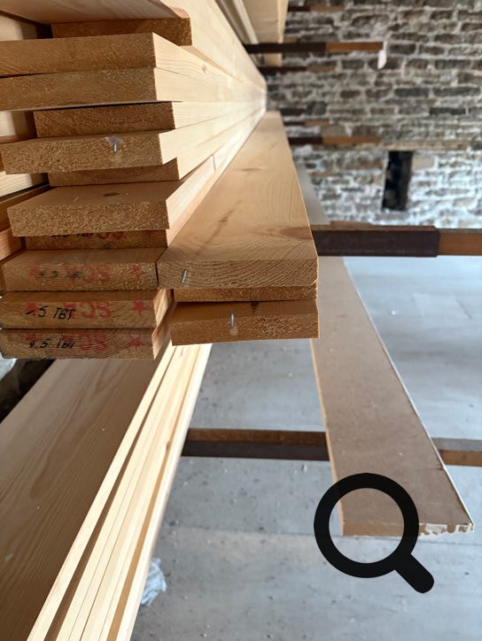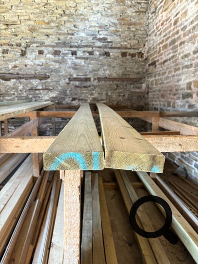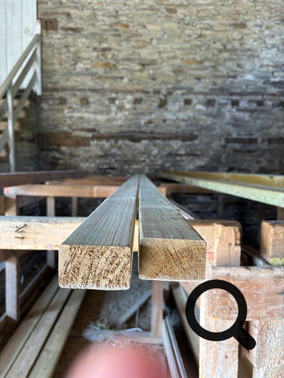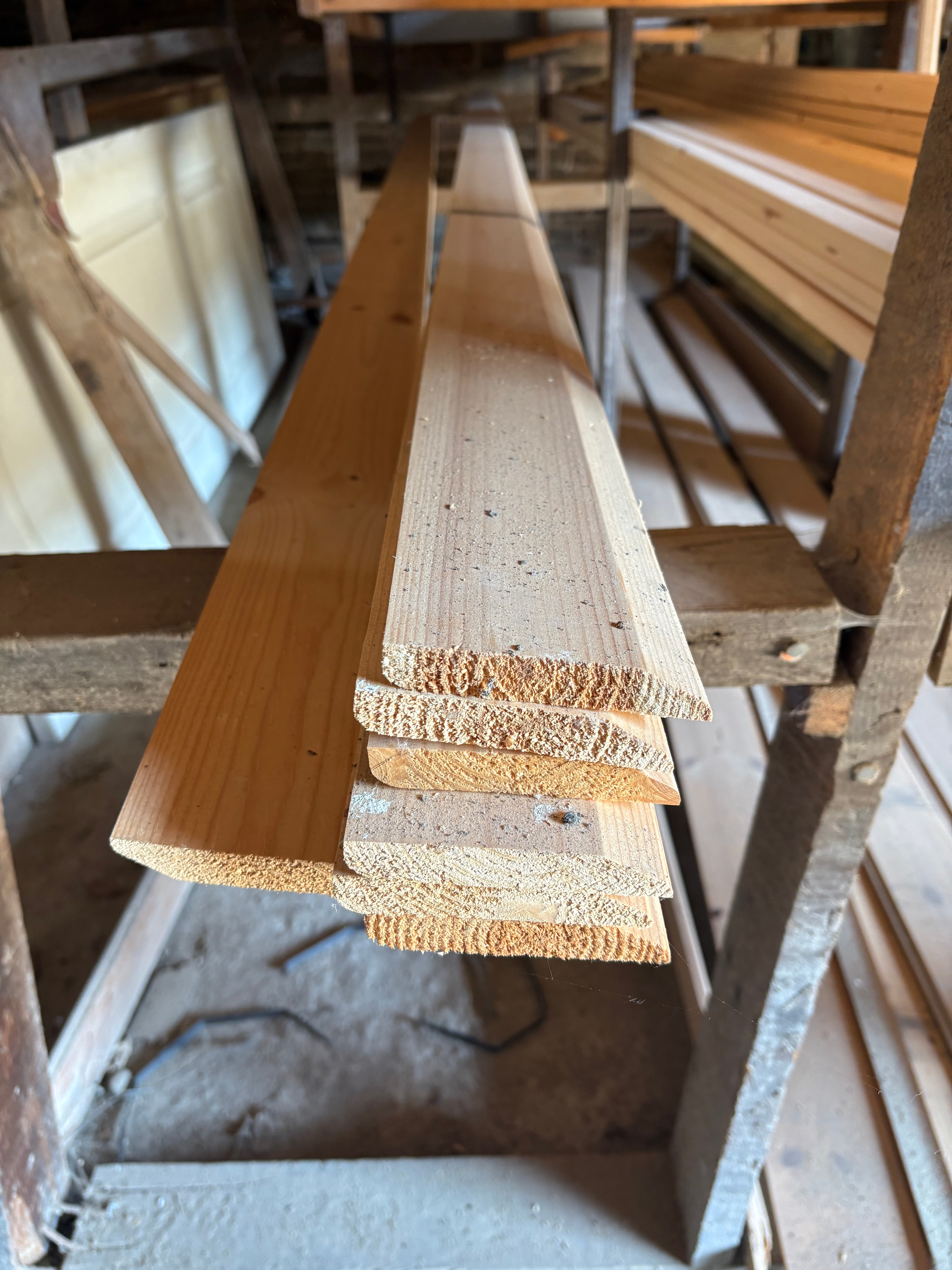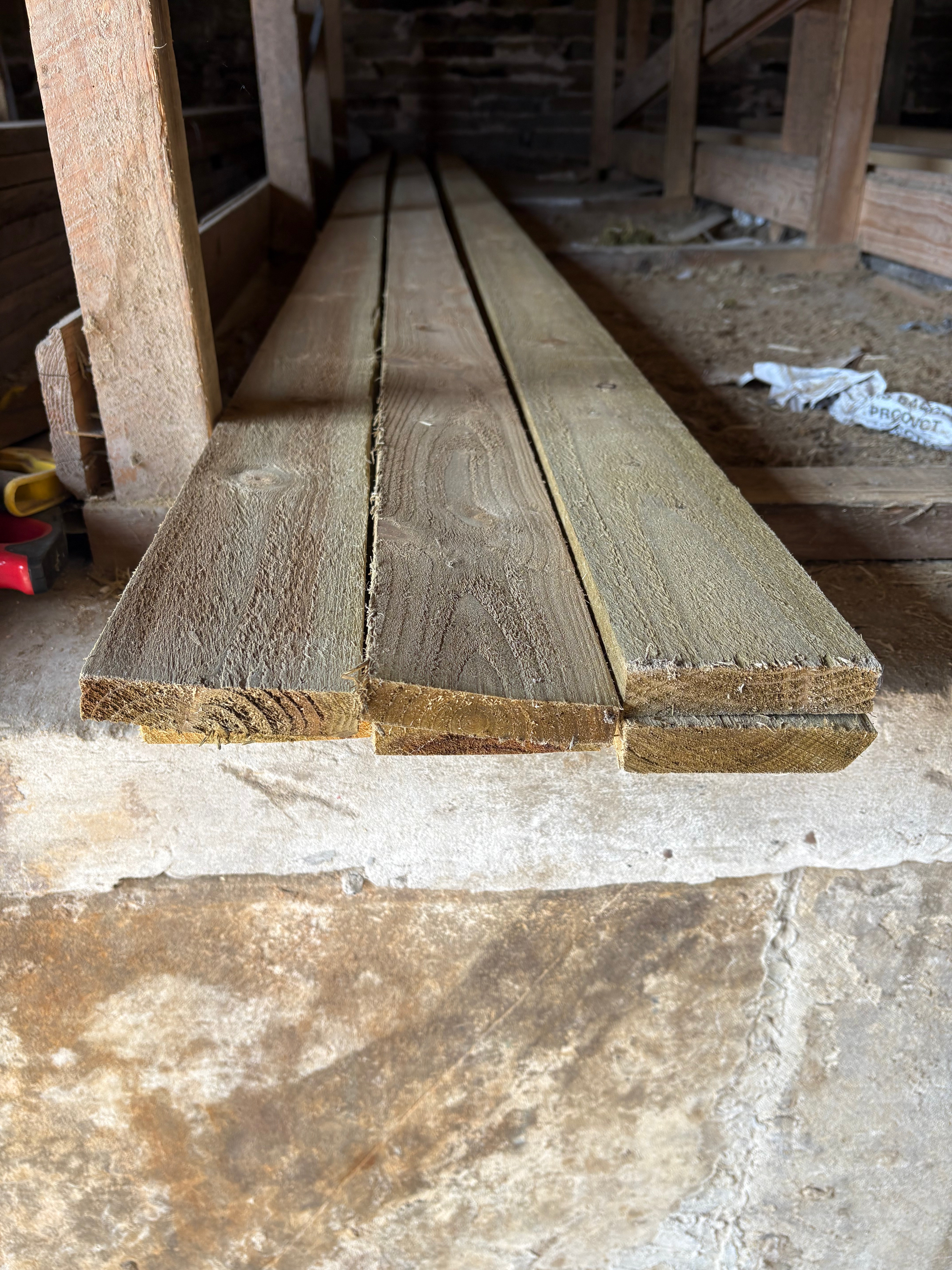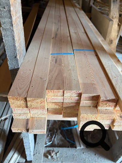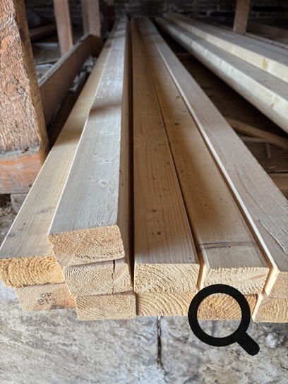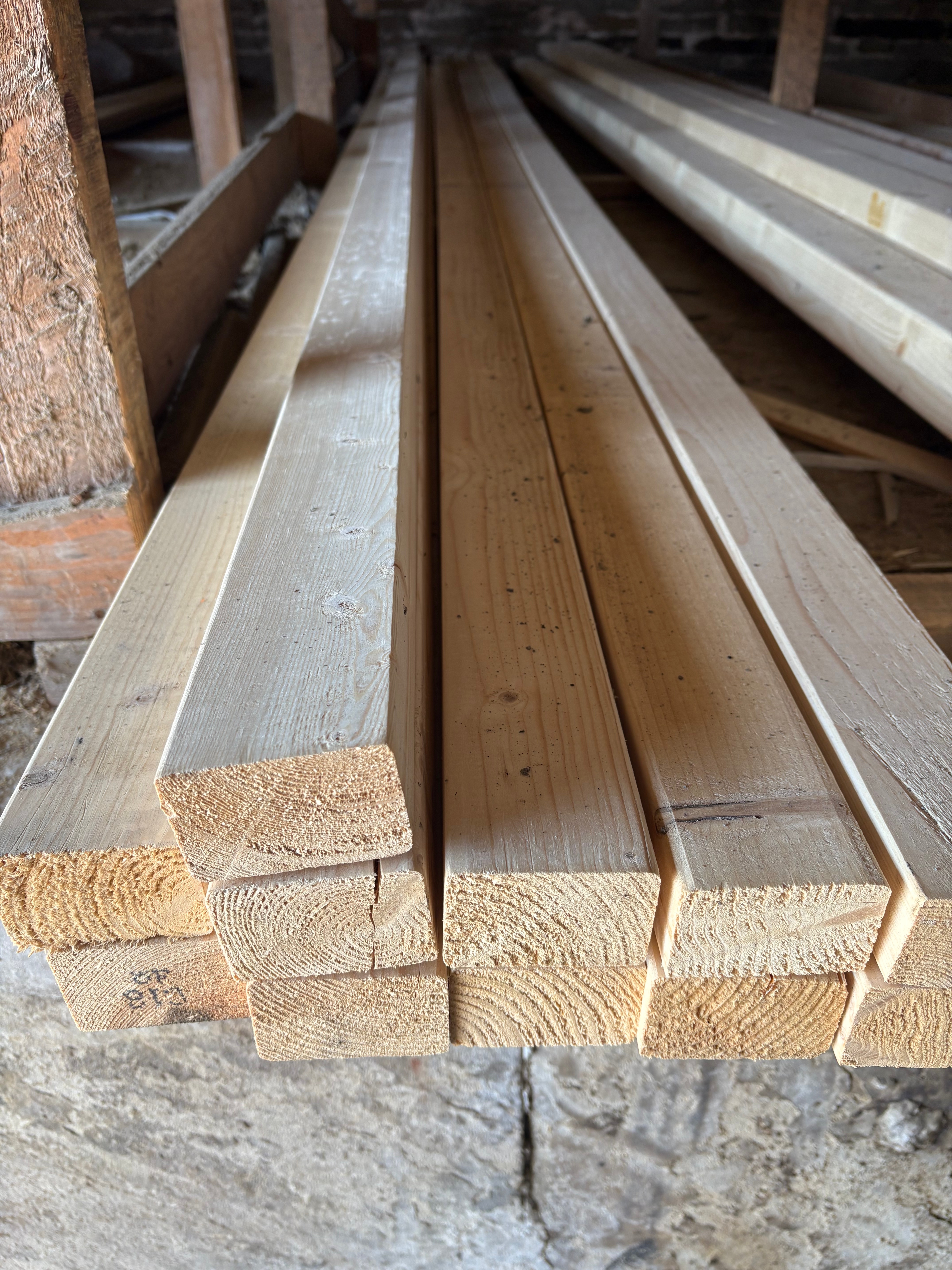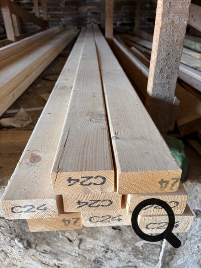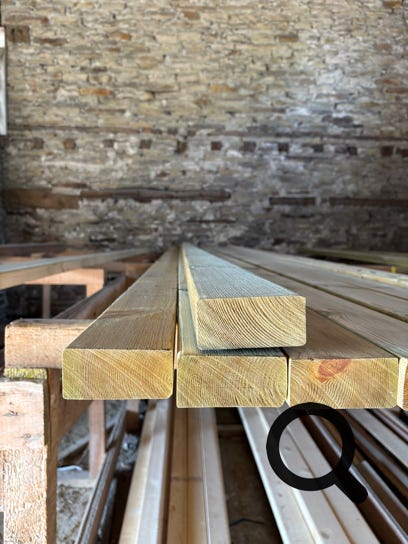 Lengths of 4”x2” (47x100mm) sawn timber, used for construction of walls etc. 4.8m lengths.