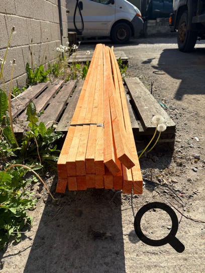 Lengths of 3”x2” (47x75mm) sawn timber, used for construction of walls etc. 4.8m lengths.