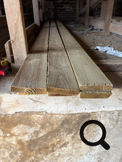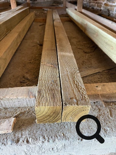 Lengths of 6”x2” (47x150mm) sawn timber, tantalised for external use, often used for external structures such as under decking. 4.8m lengths.