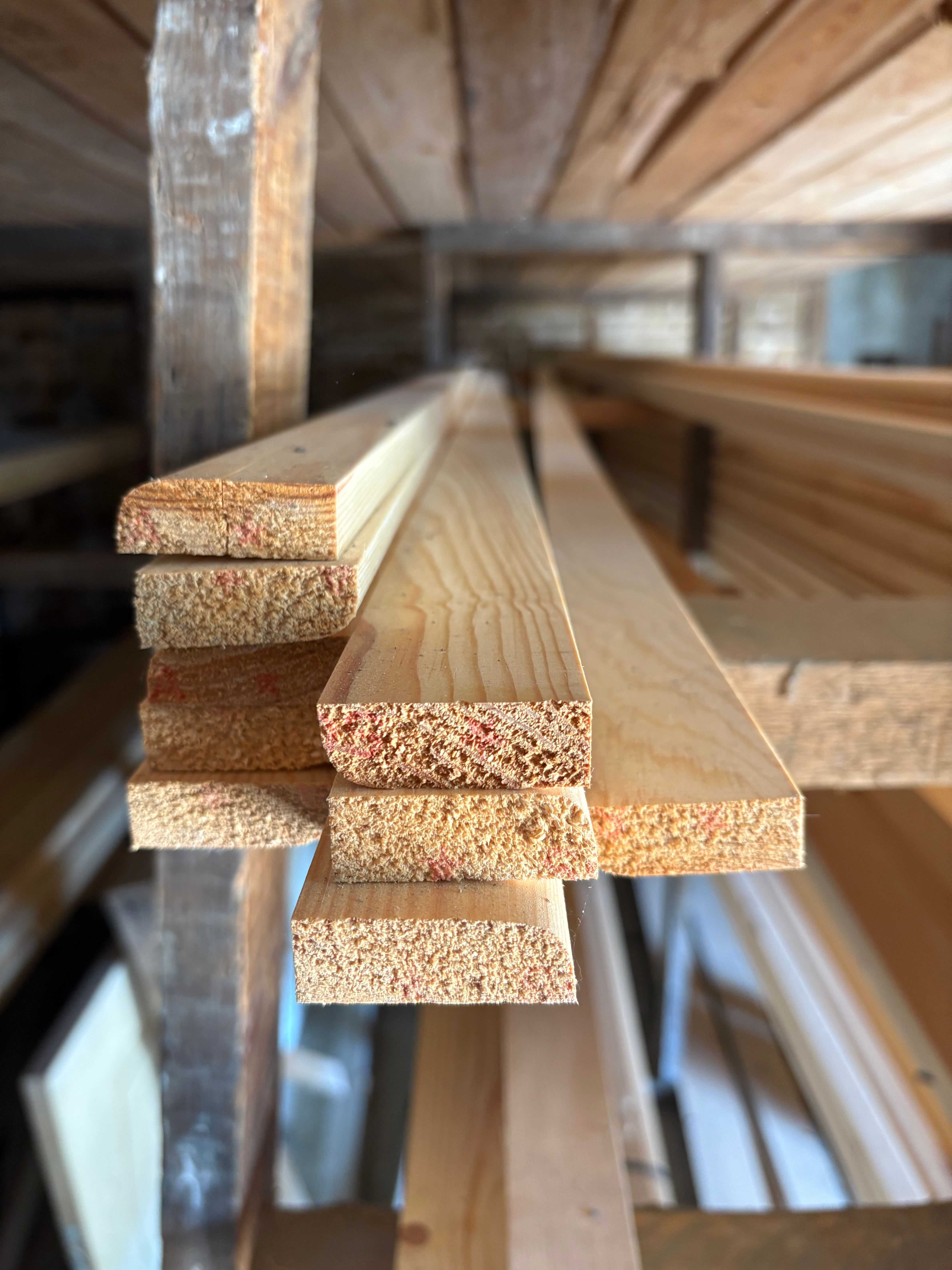 Bullnose edged pine used for architrave or decorative edging. 50mm or 75mm width available, 4.2m lengths.