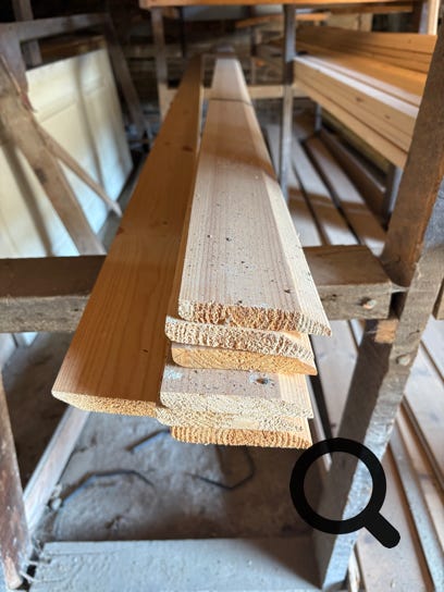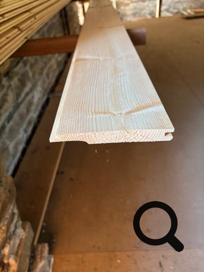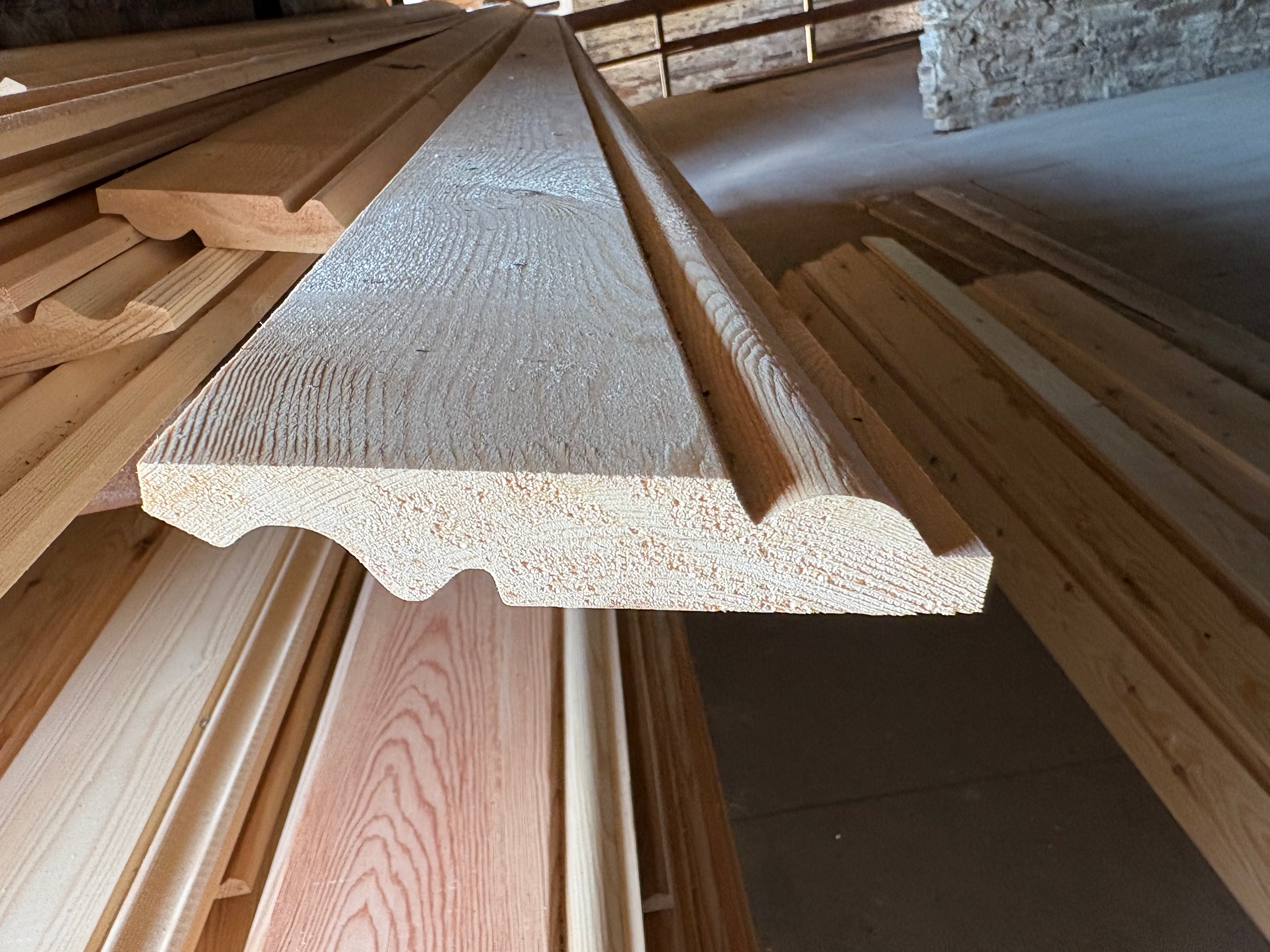 Shiplap lengths used to clad sheds. Boards overlap to make a waterproof surface.