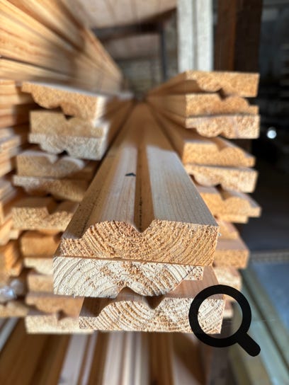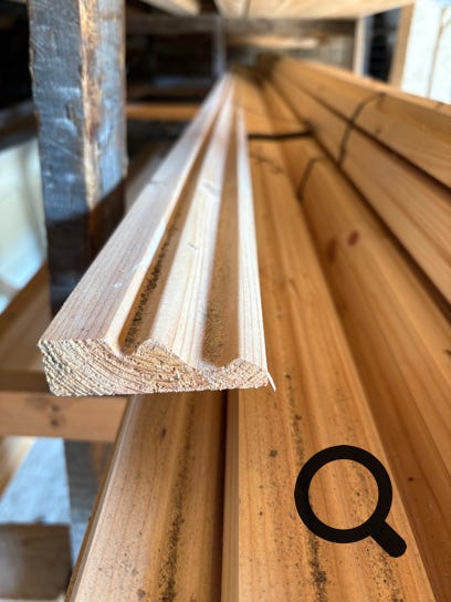 Bullnose or chamfered edged pine used for architrave, decorative edging or skirting. 75 or 100mm width available, 4.2m lengths.