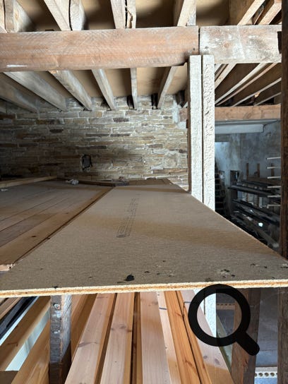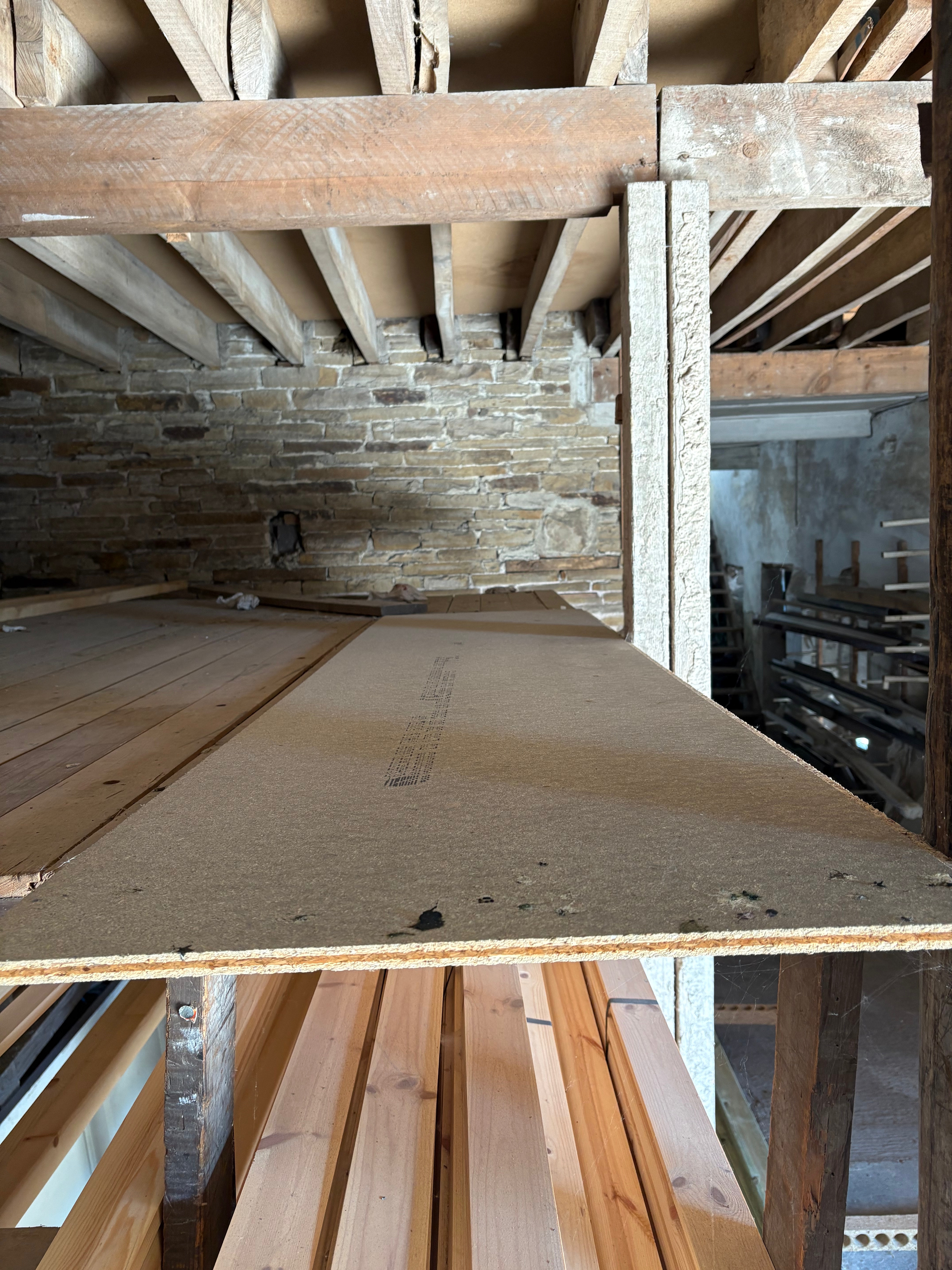 Tongue and groove chipboard floorboards, moisture resistant. 18mm thickness, 2.4m x 600mm sheet sizes.