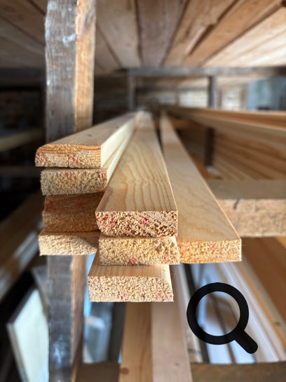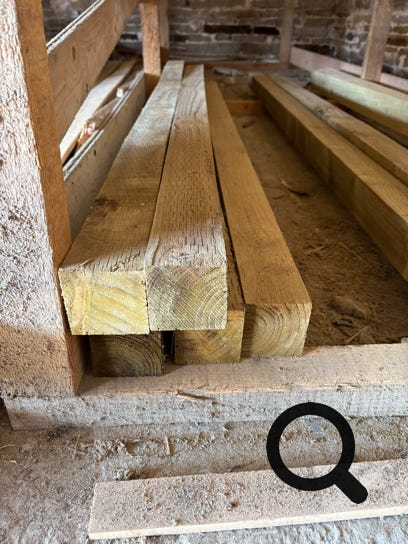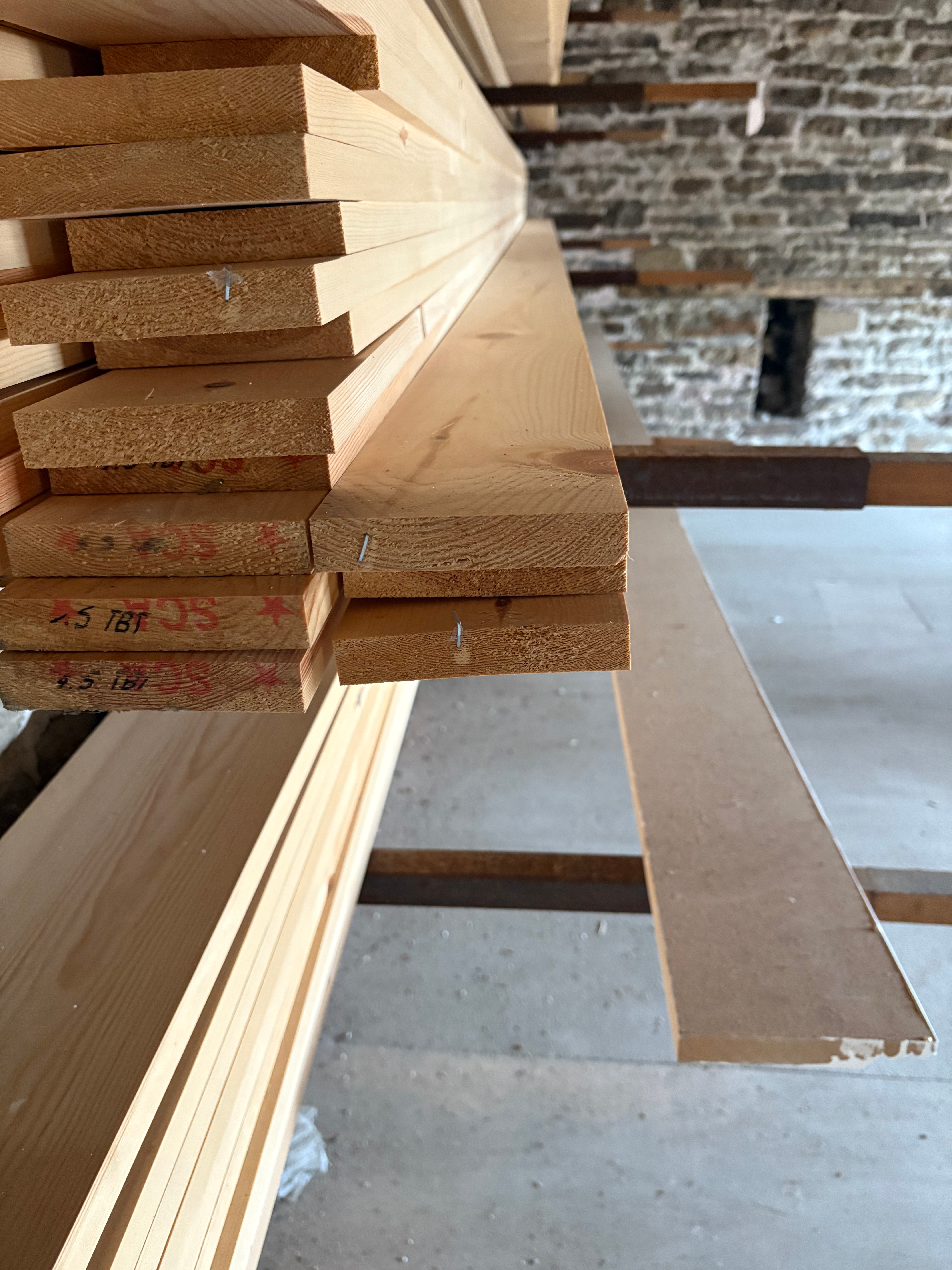 Lengths of 4”x2” (47x100mm) sawn timber, used for construction of walls etc. 4.8m lengths.